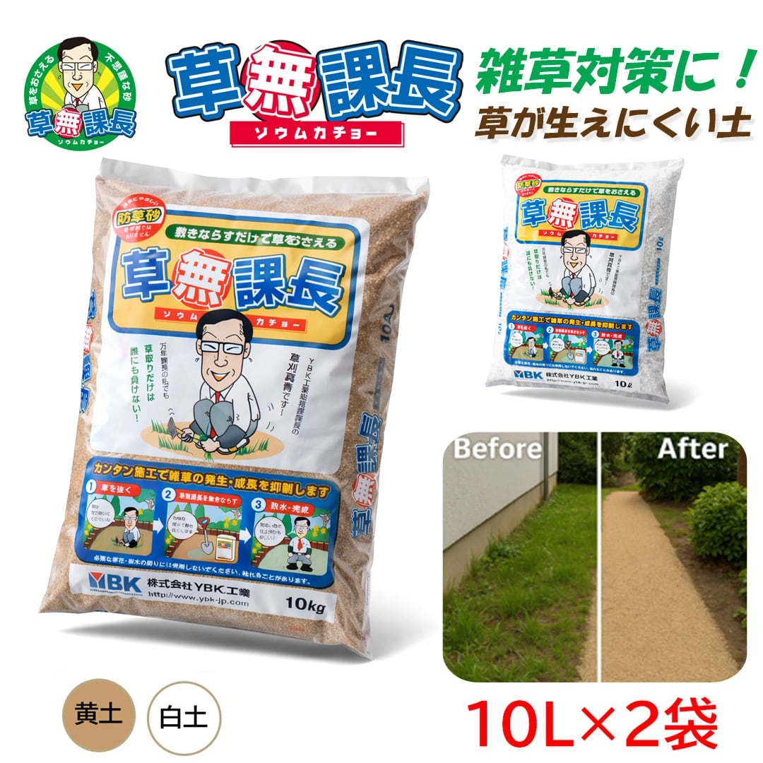 草無課長|撒くだけで整う 固めない防草用 表土被覆材 10L×2袋(黄土/白土)