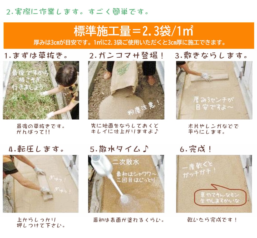 1㎡あたり約2袋(約50kg)が必要です。