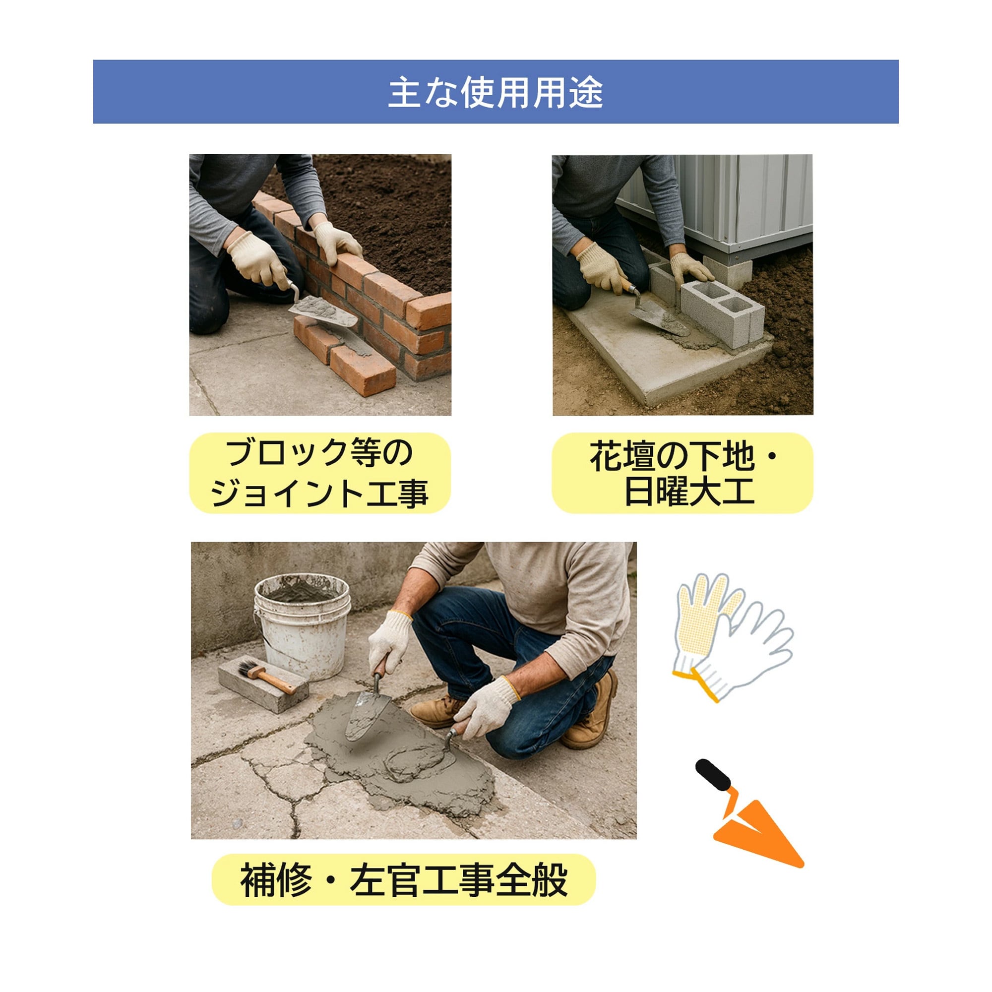 すぐ使えるインスタントセメント。