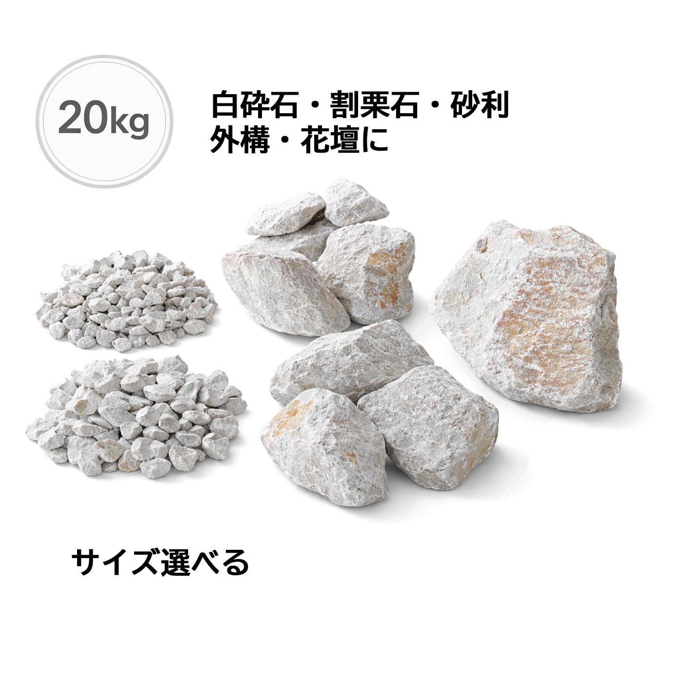 天然石 白砕石 アイボリーロック 20kg 置くだけ庭整う 砂利 外構 花壇用