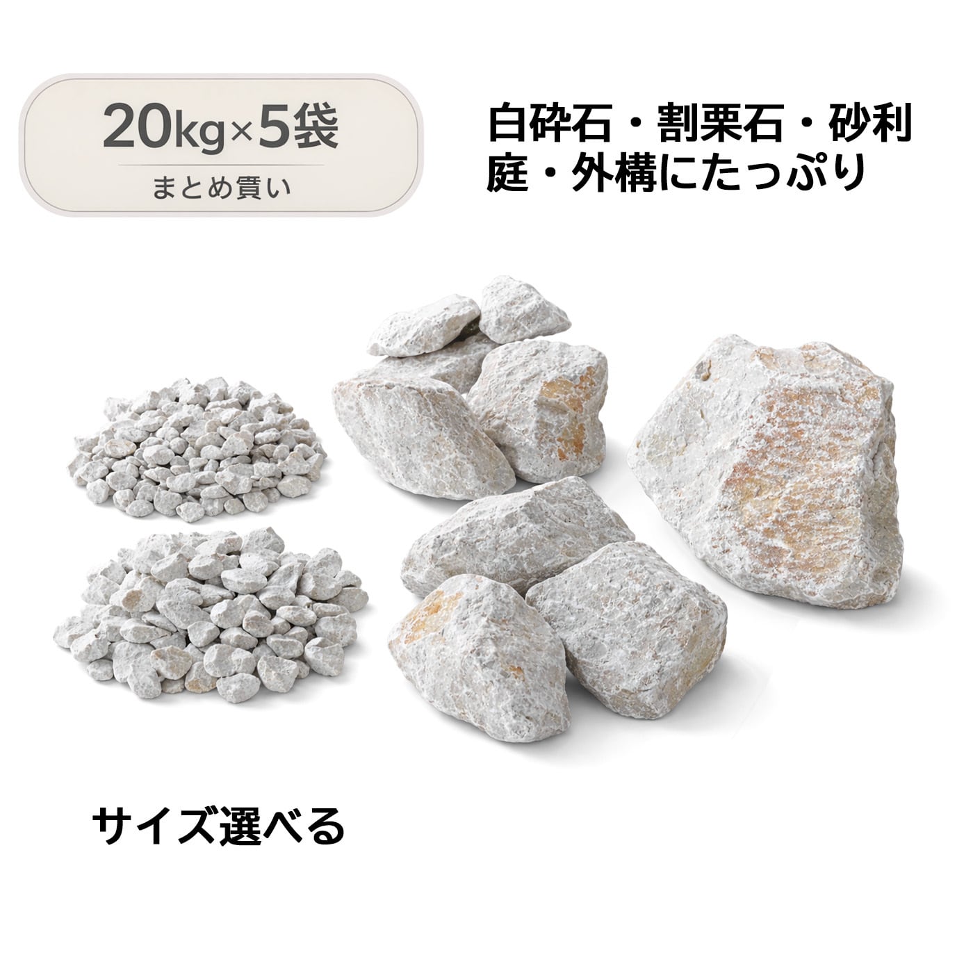 天然石 白砕石 アイボリーロック 20kg×5袋 砂利 割栗石 庭 外構 花壇 ロックガーデン用
