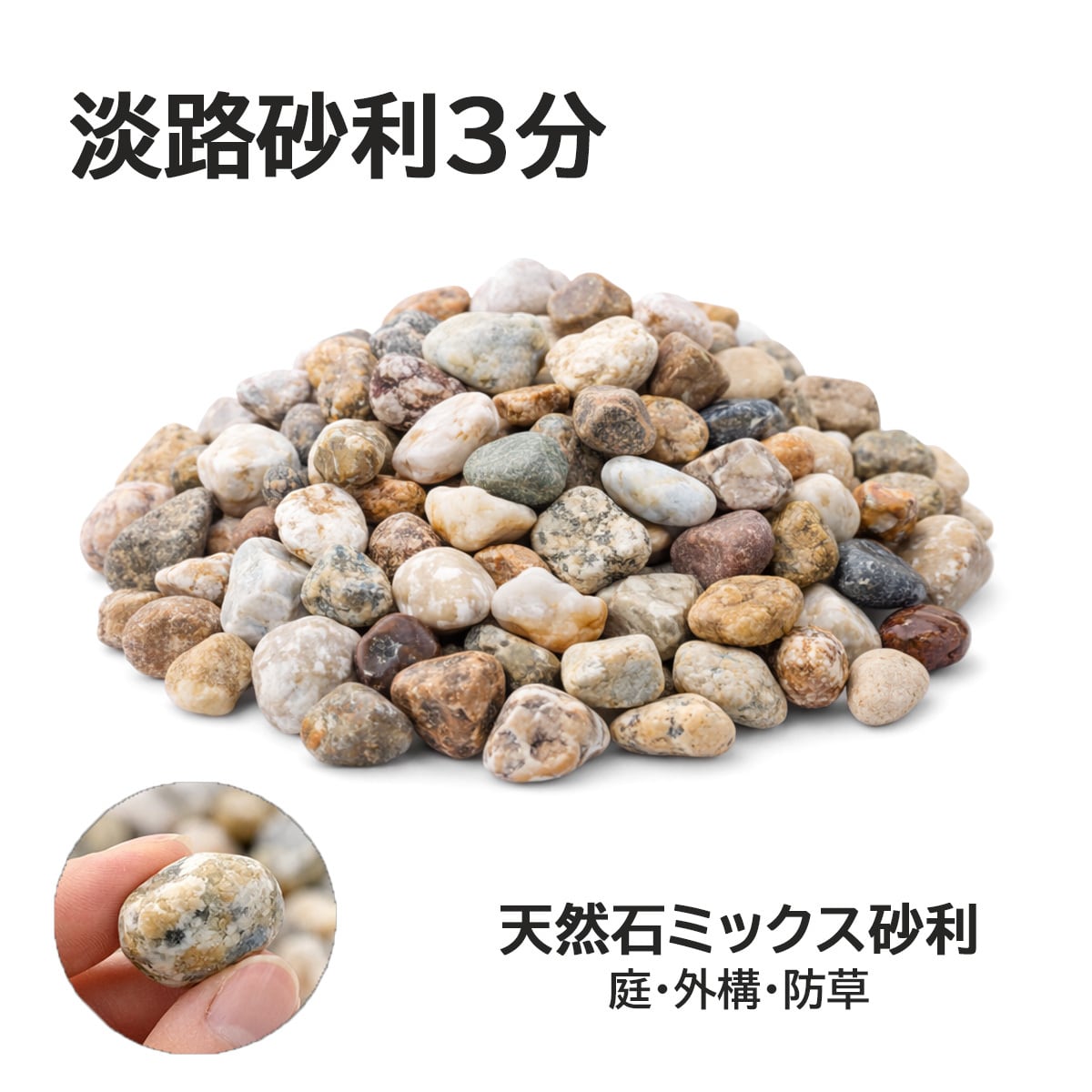 国産 天然石 淡路砂利 3分 約9mm 庭砂利 和庭 洋風外構 洗い出し 防草 DIY 18kg