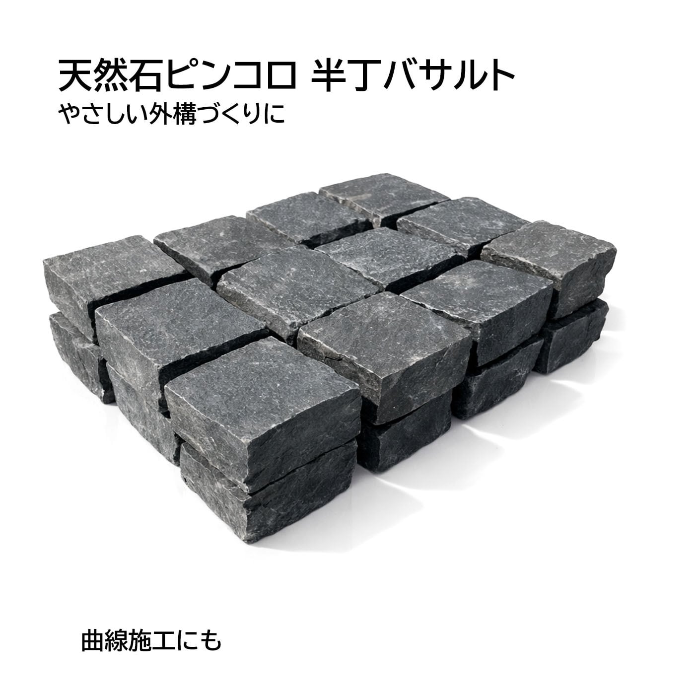 天然石ピンコロ 半丁 バサルト(ベトナム産)24個セット|花壇・縁取りDIYに使える玄武岩ピンコロ石