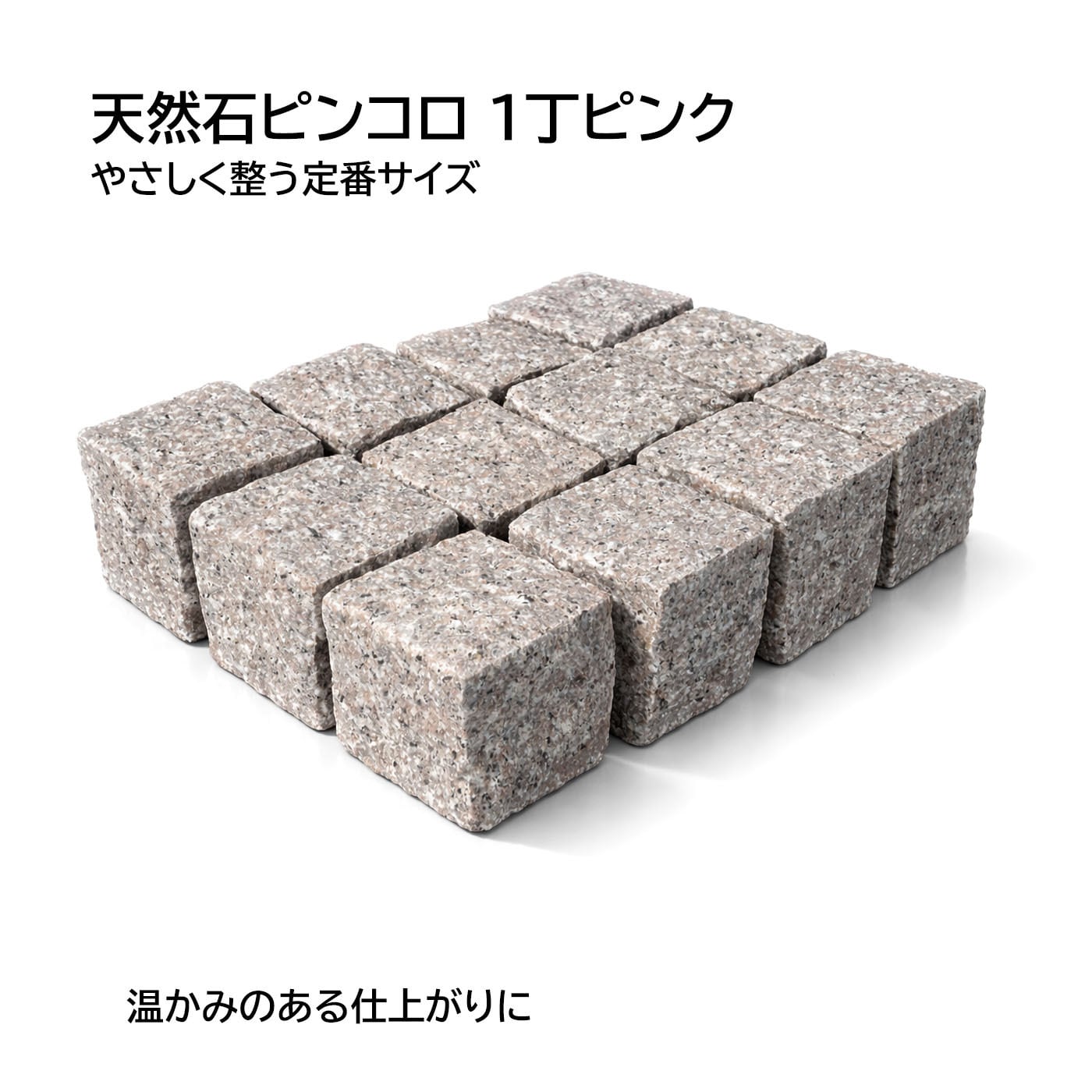 天然石ピンコロ 1丁 ピンク(ベトナム産)12個セット|花壇・縁取りDIYに使いやすい定番ピンコロ石