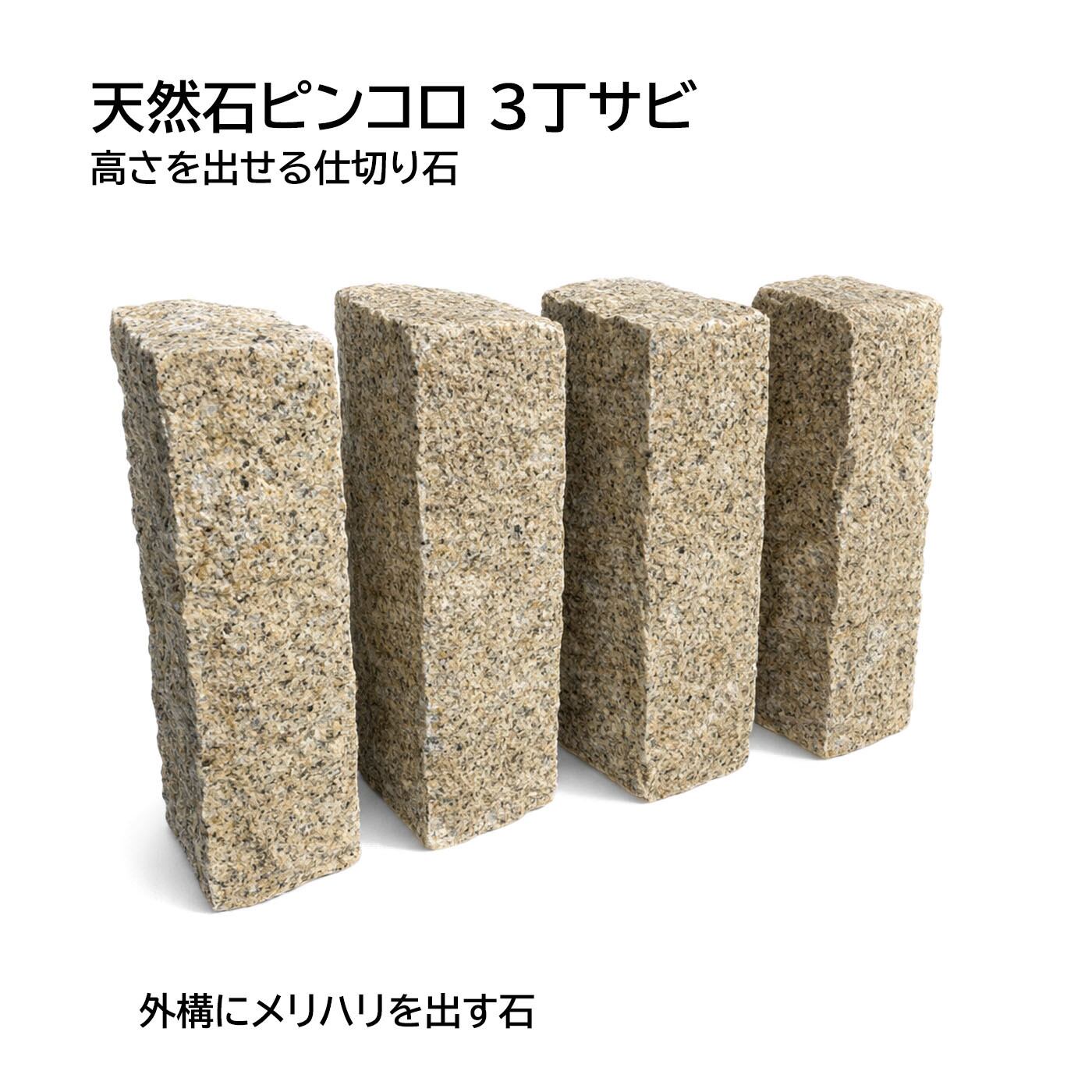 天然石ピンコロ 3丁 サビ(ベトナム産)4個セット|花壇・通路の仕切りに使える 高さが出せるピンコロ石