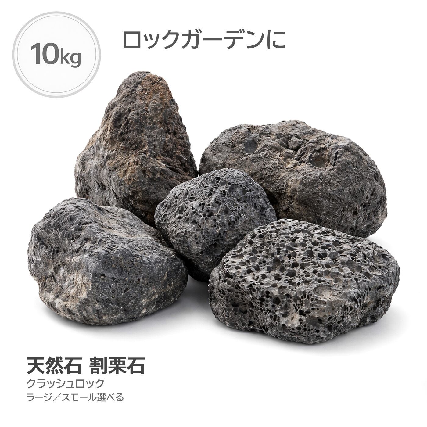 火山岩 割栗石 クラッシュロック ボルカブラック 外構石 ロックガーデン用 10kg袋 ラージ/スモール選択可