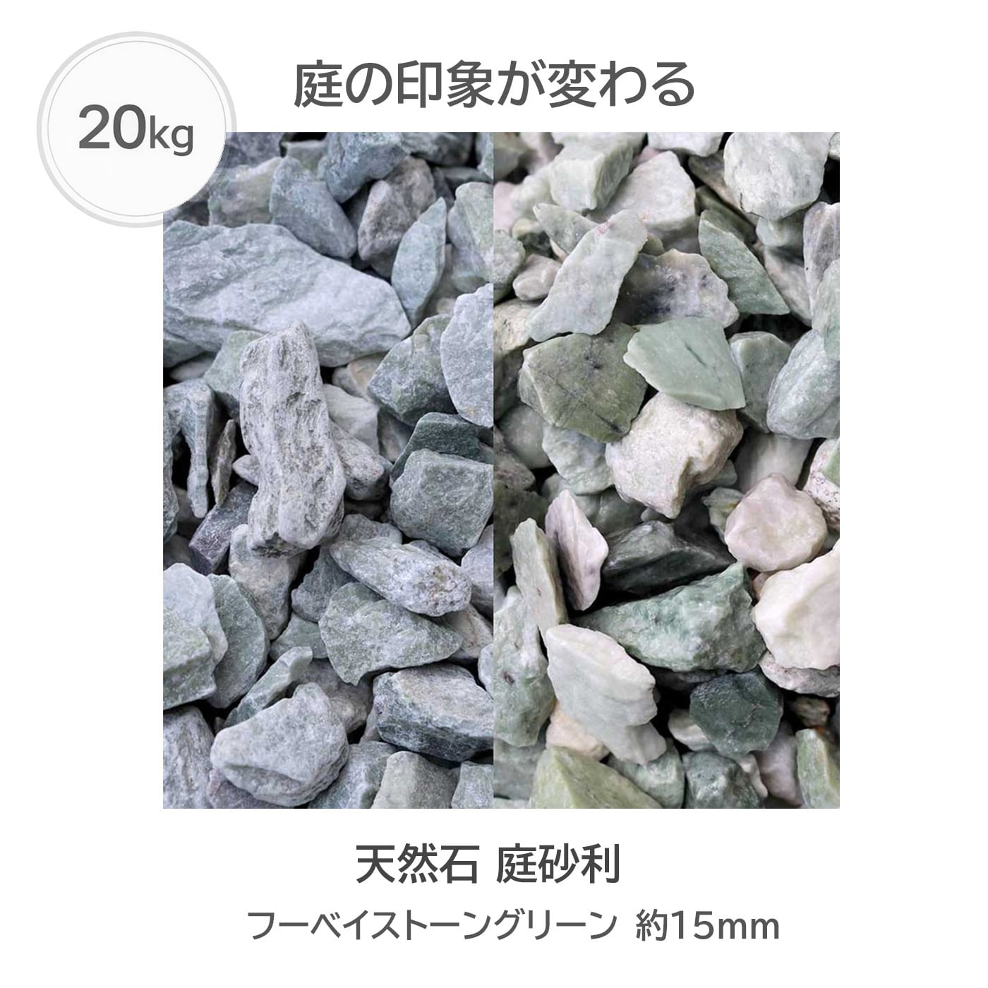 天然石 庭砂利 フーベイストーングリーン 20kg 約15mm 外構 ロックガーデン 花壇 防草 DIY